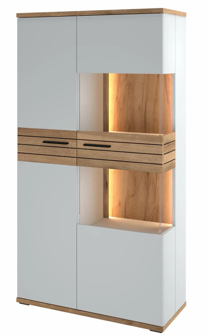 - Mit 2 Türen – 1 Türe davon mit Glasausschnitten, 4 Einlegeböden