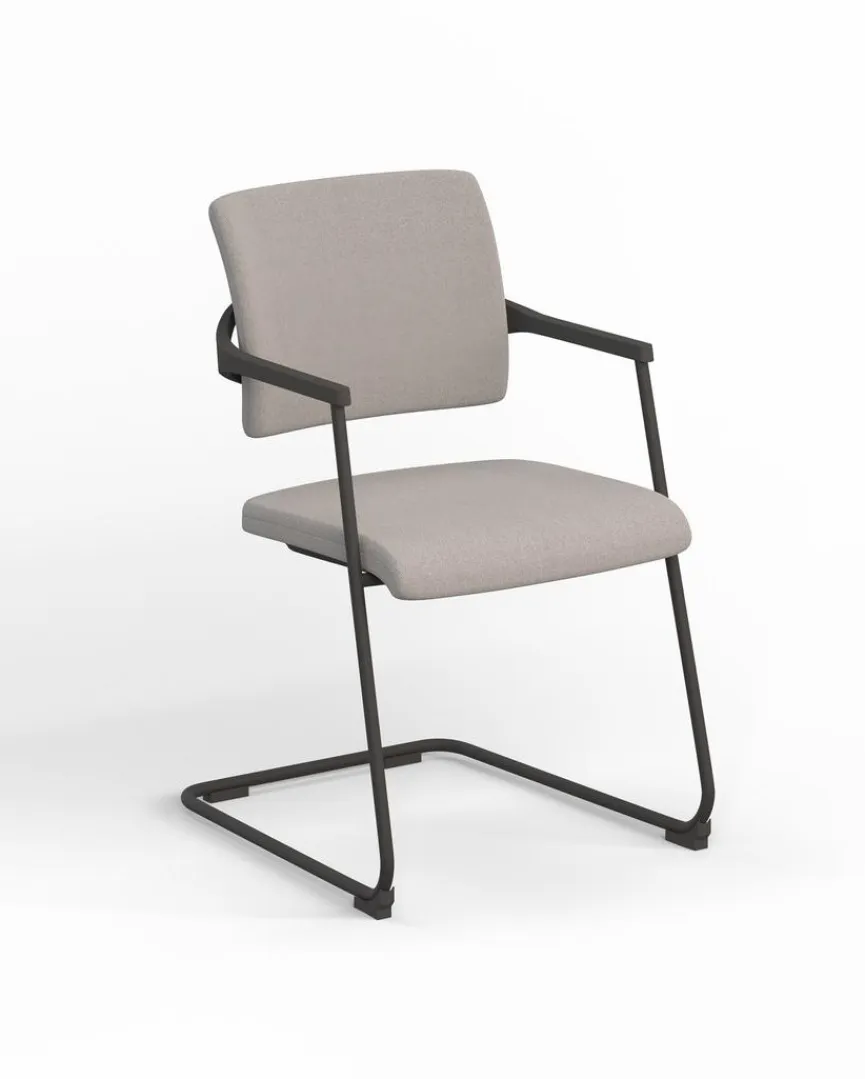 - Bezug aus Stoff in grau, Gestell aus Metall in schwarz, Armlehnen aus Kunststoff in schwarz