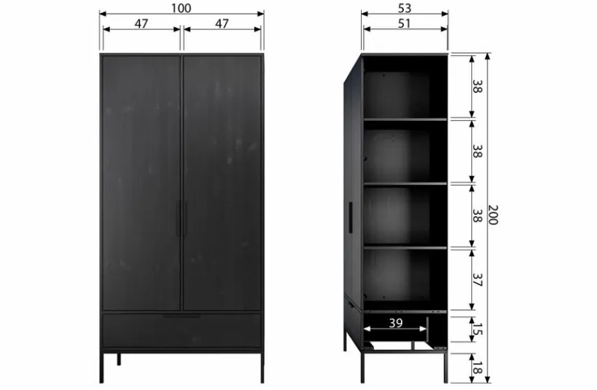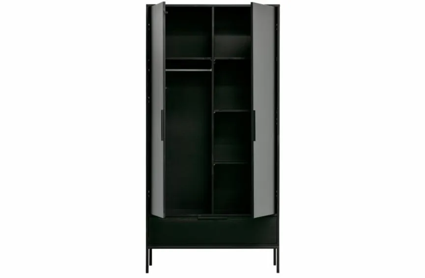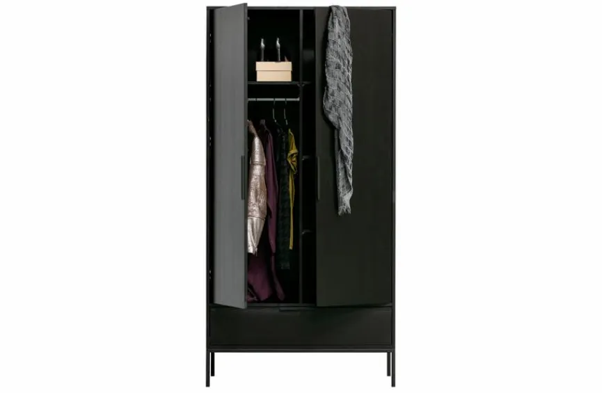 Der Dielenschrank Adam zeichnet sich durch sein neutrales, dezentes Design aus, das zu nahezu jedem Einrichtungs- und Wohnstil passt. Darüber hinaus hat dieser Garderobenschrank vier Einlegeböden und eine Kleiderstange. Auf diese Weise stellt der Dielenschrank Adam besonders viel praktischen Stauraum zur Verfügung.