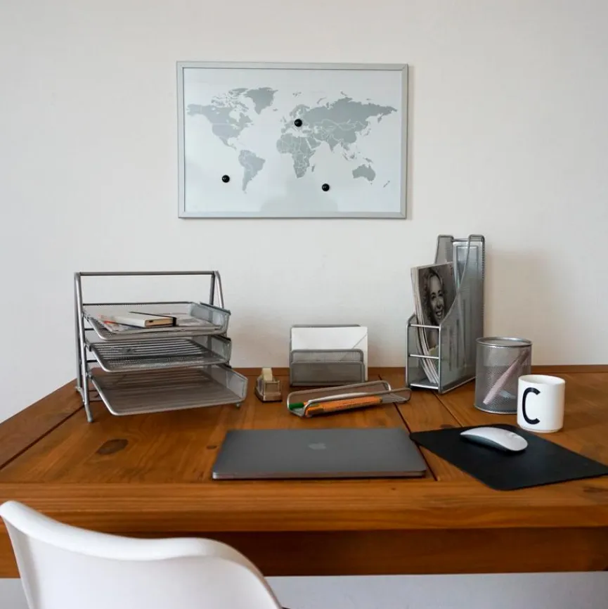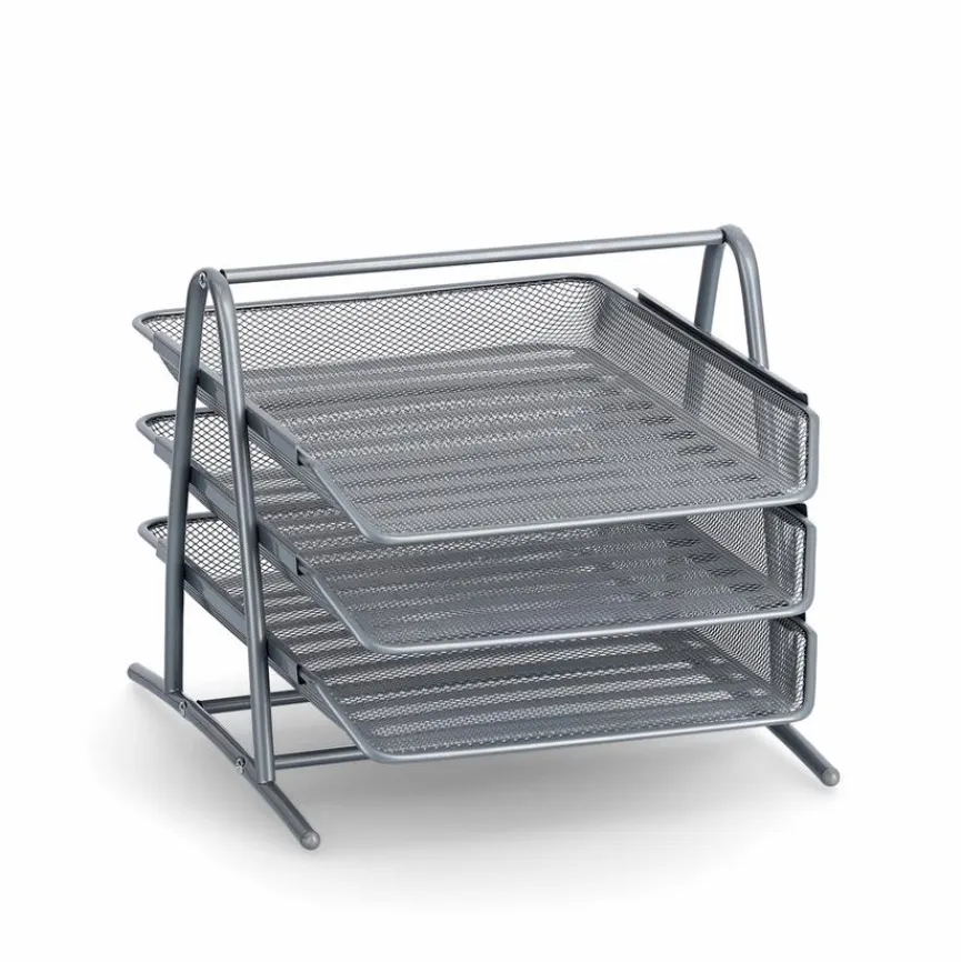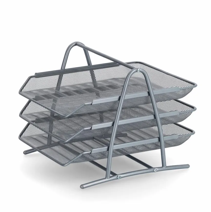 Die praktische Dokumentenablage Mesh 35,5×29,5 cm hilft dabei, einen übersichtlichen Arbeitsplatz zu schaffen. Briefe, Magazine, Entwürfe und andere Dokumente bis zum DIN-A4-Format lassen sich sammeln und sind schnell zur Hand, wenn sie benötigt werden. Dank der etagenartigen Fächer-Anordnung stellt die Dokumentenablage Mesh 35,5×29,5 cm zudem eine platzsparende Lösung für den Schreibtisch dar.