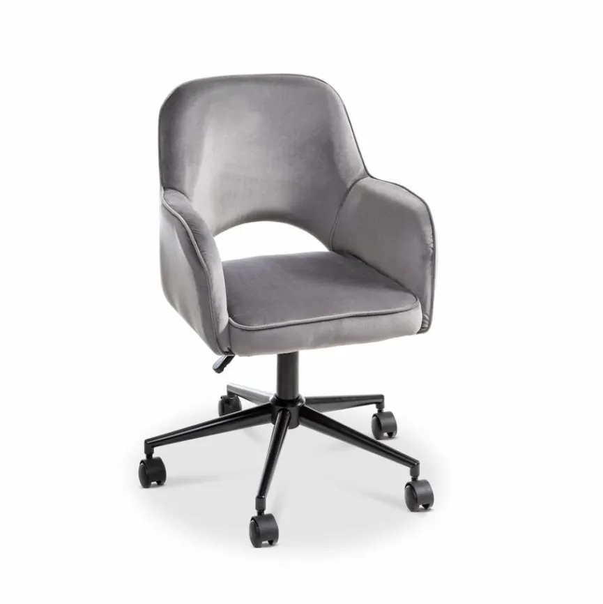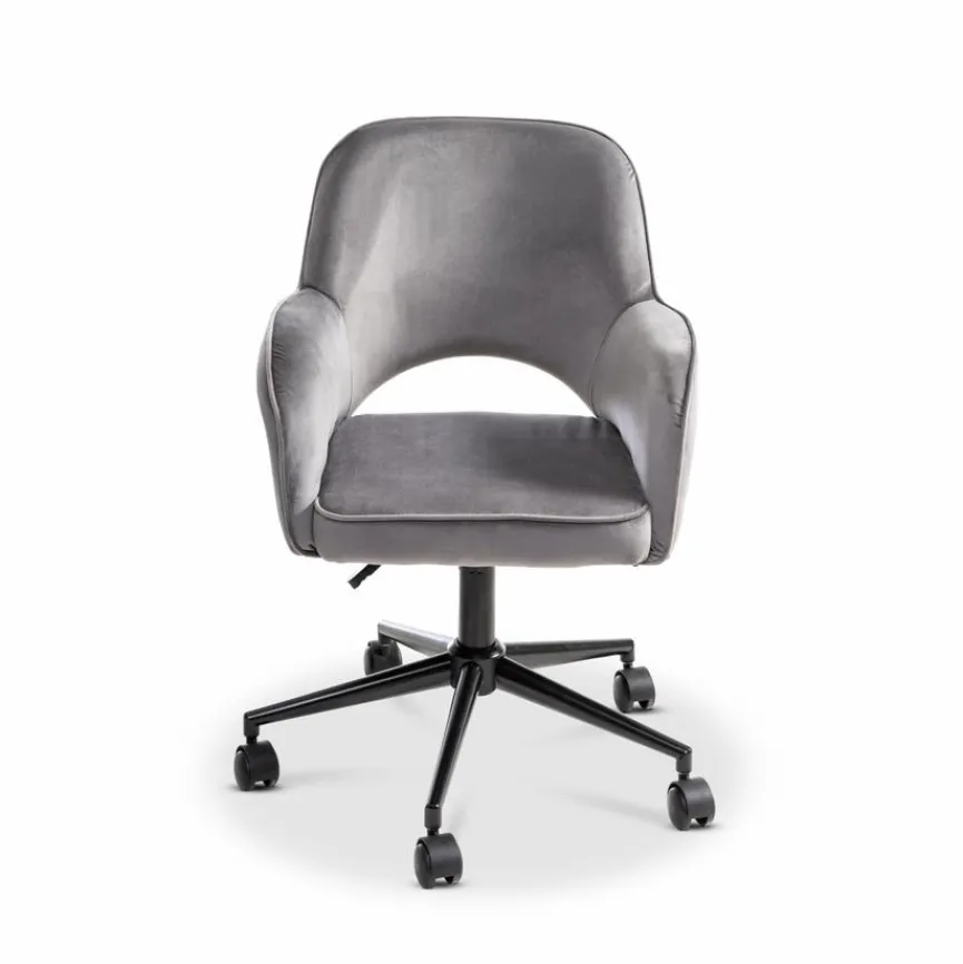 - Bezug aus Samtstoff in dunkelgrau, Fußkreuz aus Kunststoff in schwarz