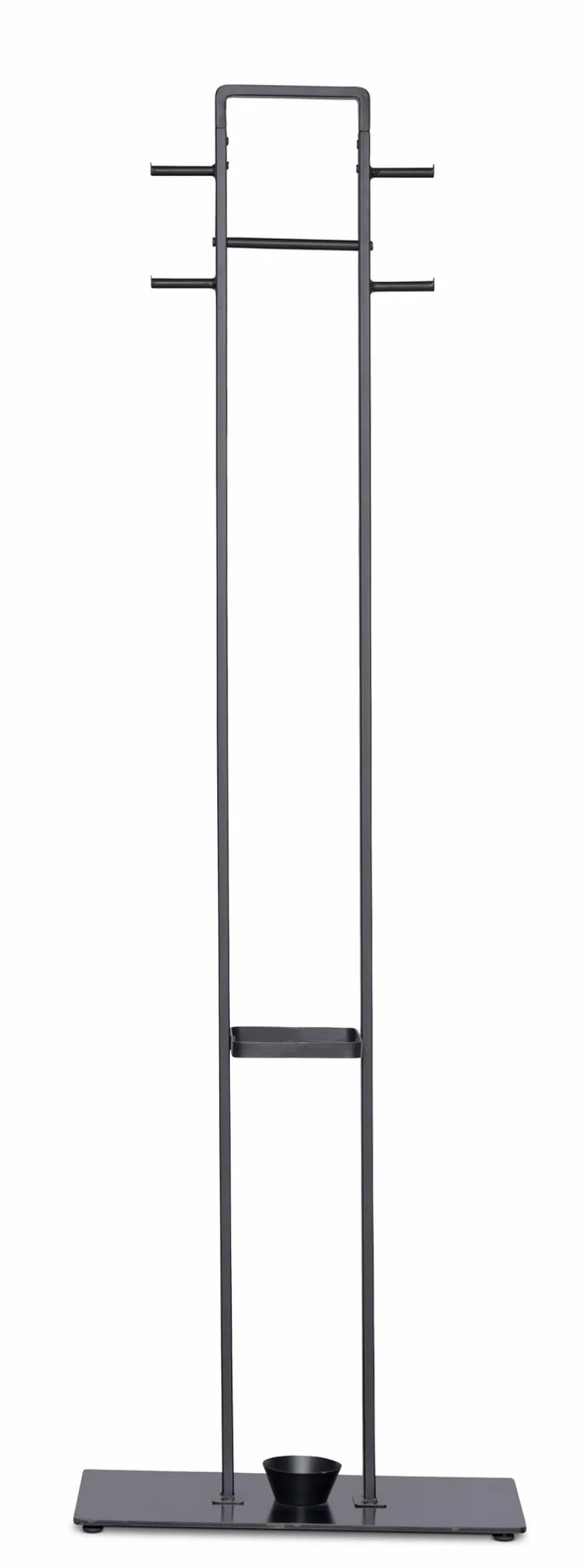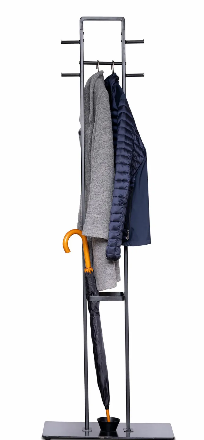 Optimieren Sie Ihren Eingangsbereich mit dem schlanken Garderobenständer Amber. Der flache Standfuß und der symmetrische Rahmen bieten eine elegante Aufbewahrungsmöglichkeit für Ihre Jacken und Accessoires. Der elegante Garderobenständer Amber ist mit vier Haken ausgestattet und sorgt so für Ordnung und Stil in Ihrem Zuhause.