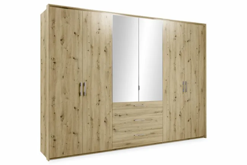 Der Kleiderschrank Henderson 301×223 cm von set one by Musterring steht für ein modernes und zugleich gemütliches Erscheinungsbild. Des Weiteren bietet Ihnen dieser ausgesprochen geräumige Schrank eine optimale Nutzung des zur Verfügung stehenden Stauraums. Zwei mittig platzierte Spiegeltüren verleihen dem Kleiderschrank Henderson 301×223 cm eine aufgelockerte Optik.