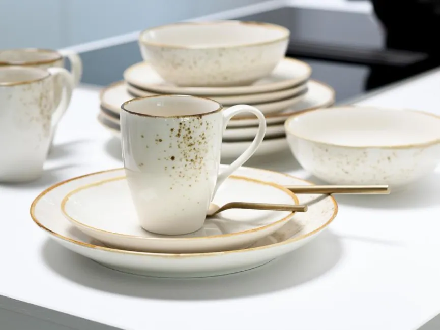 - Je 4 Speiseteller Ø 27 cm, Frühstücksteller Ø 21 cm, Müslischalen Ø 16,5 cm, Kaffeebecher 300 ml