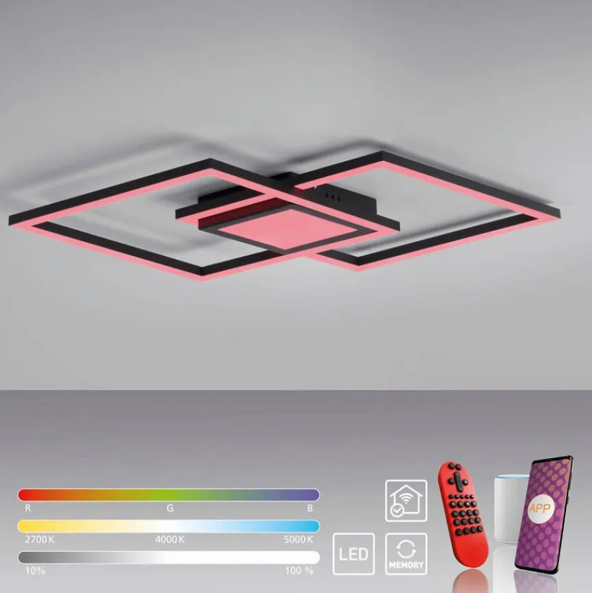 - Mit Fernbedienung zum Dimmen, Einstellen der Farbtemperatur (2.700 -5.000 Kelvin, Farbwechsel (RGB) und das Einstellen unterschiedlicher Lichtszenen oder per App steuerbar