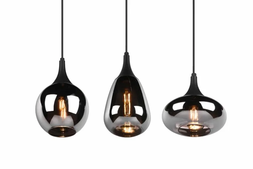 Mit der Pendelleuchte Lumina aus der Lampenmanufaktur Trio haben Sie einen innovativ gestylten Eyecatcher für Ihren Essbereich zur Hand, der Sie sofort in seinen Bann zieht. Dies gelingt durch die verschieden geformten Schirme der Pendellampe. Beeindruckend ist auch die Integrationsfähigkeit der Pendelleuchte Lumina in die verschiedensten Wohnstile.