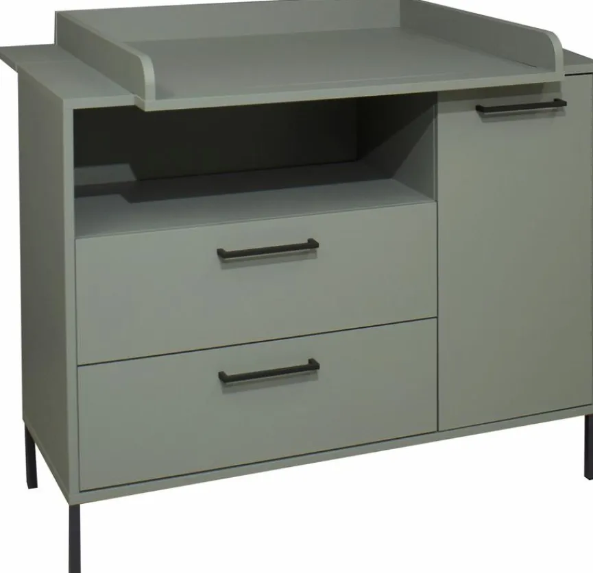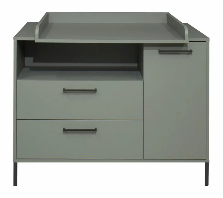 - Aus Holzwerkstoff (Spanplatte) mit kratzfester Melaminharzfolie in Pine Green Matt Lack, Füße und Griffe aus Metall
