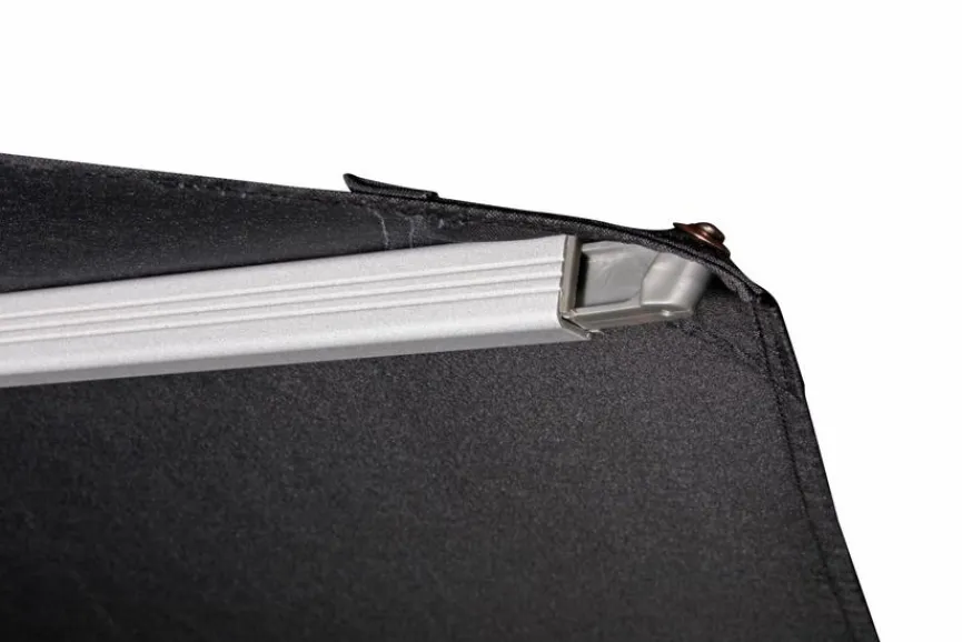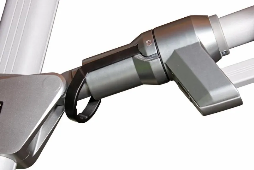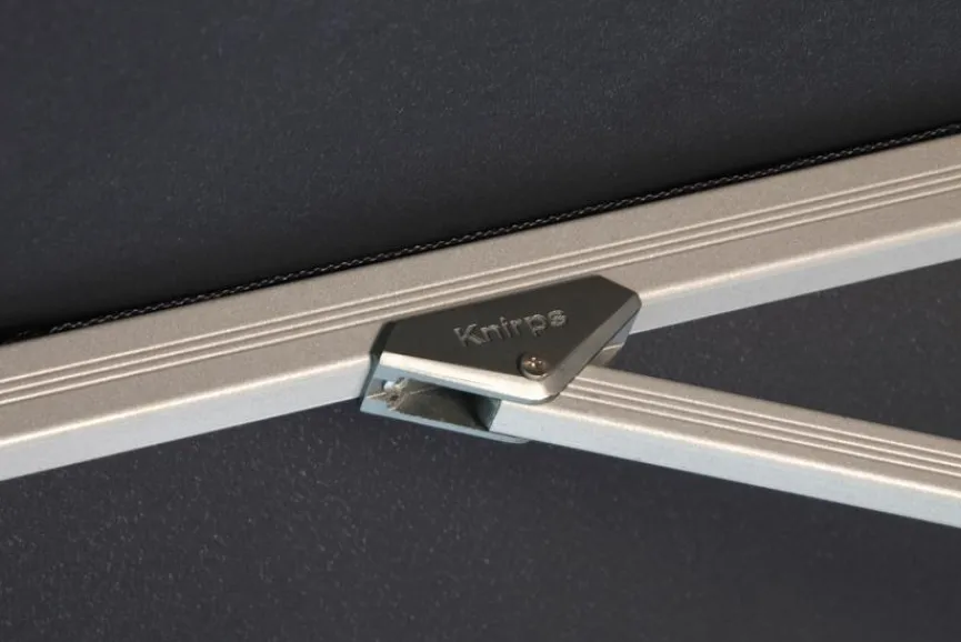 - Leichtgängige abklappbare Kurbel, Selbstspannende Schirmdachspitzen