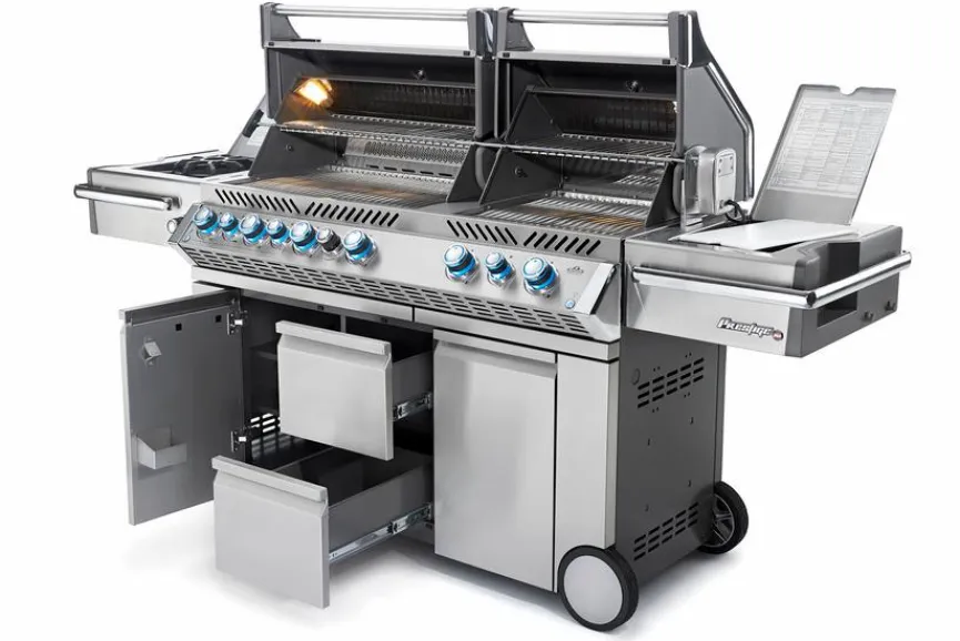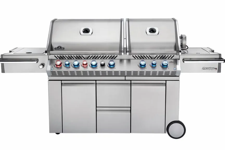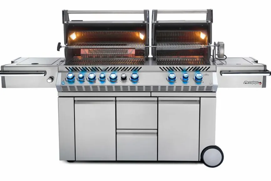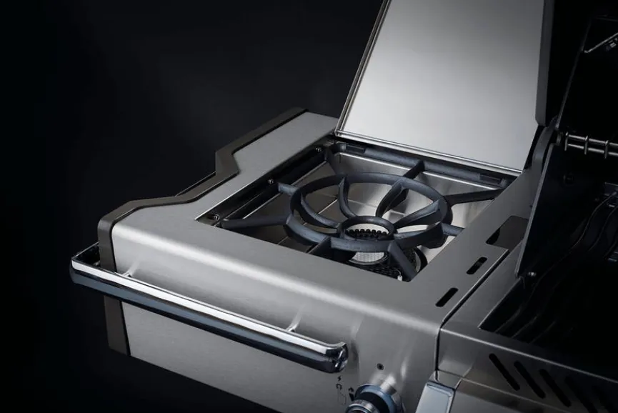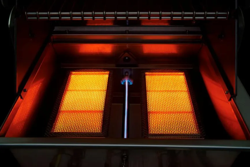 - Mit 4 Hauptbrenner aus Edelstahl, 2 Infrarot SIZZLE ZONE™ Hauptbrenner, Edelstahl-Infrarot-Heckbrenner und Zweistufiger Power-Seitenbrenner
