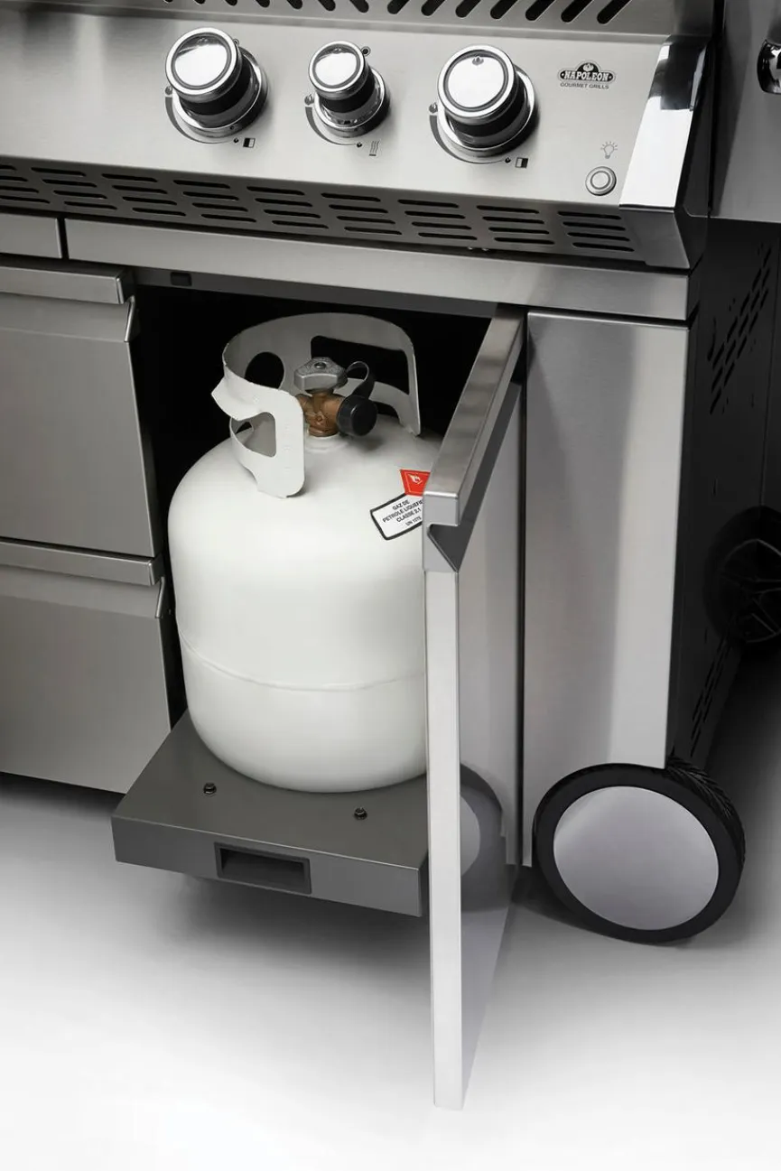 - Mit SafetyGlow™ Beleuchtung, Drehregler mit mehrfarbiger Beleuchtung (RGB), Innenbeleuchtung und Bewegungsaktivierte Beleuchtung, wird mit Propangas betrieben, Eingeschränkte Garantie auf Lebenszeit