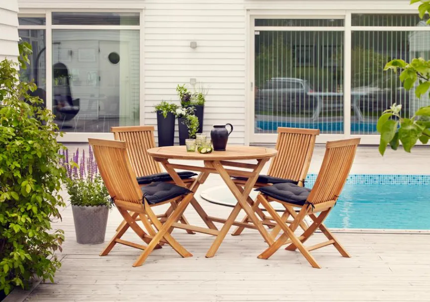 Holzmöbel sind die Klassiker unter den Gartenmöbeln. Liebhaber des langlebigen und flexiblen Naturmaterials schätzen seine warme Ausstrahlung, die für Gemütlichkeit, Robustheit und zeitlose Eleganz steht. Und wenn Sie den geliebten Möbeln dann doch die intensive Nutzung ansehen, kann das Holz leicht angeschliffen werden und die Möbel erstrahlen wieder in neuem Glanz. Das Besondere an recyceltem Teak ist sein ganz eigener Charakter und die natürlichen Gebrauchsspuren, die das Holz aufweist – Individualisten werden begeistert sein. Zudem ist Teak aufgrund des gespeicherten Gemisches aus Ölen und Kautschukbestandteilen nahezu unverrottbar. Auch Kälte, Hitze, Regen und selbst Meerwasser können dem Holz nichts anhaben.