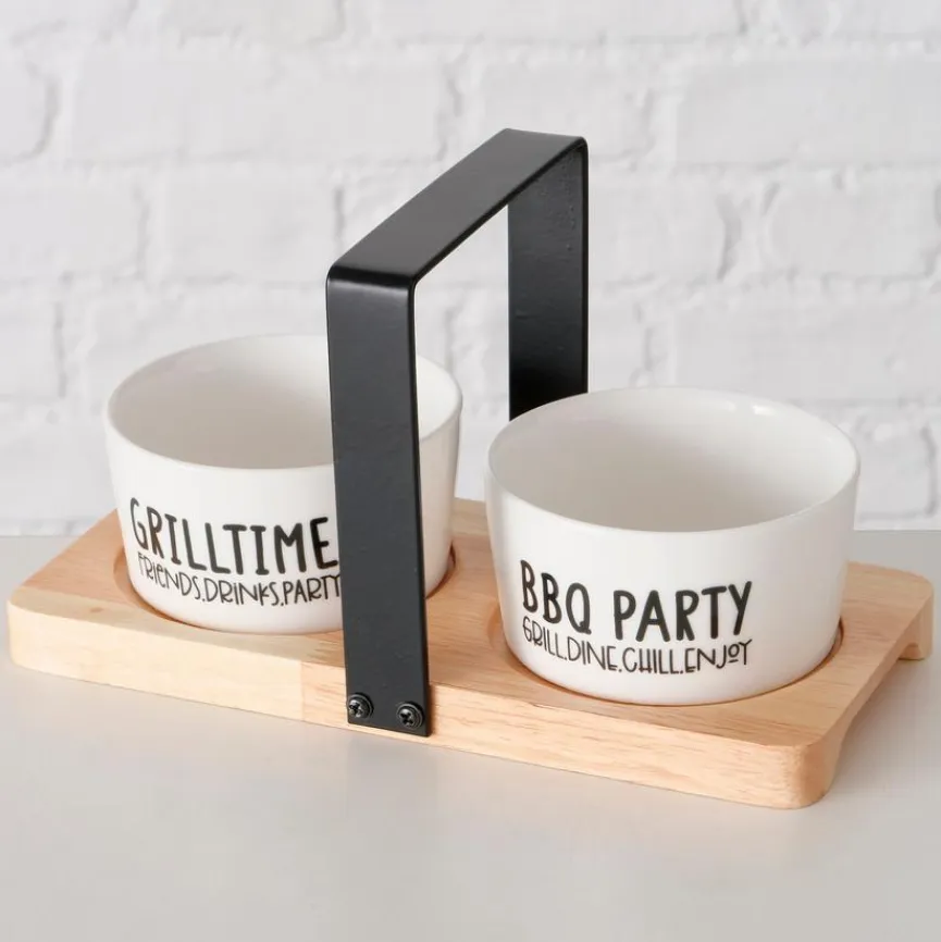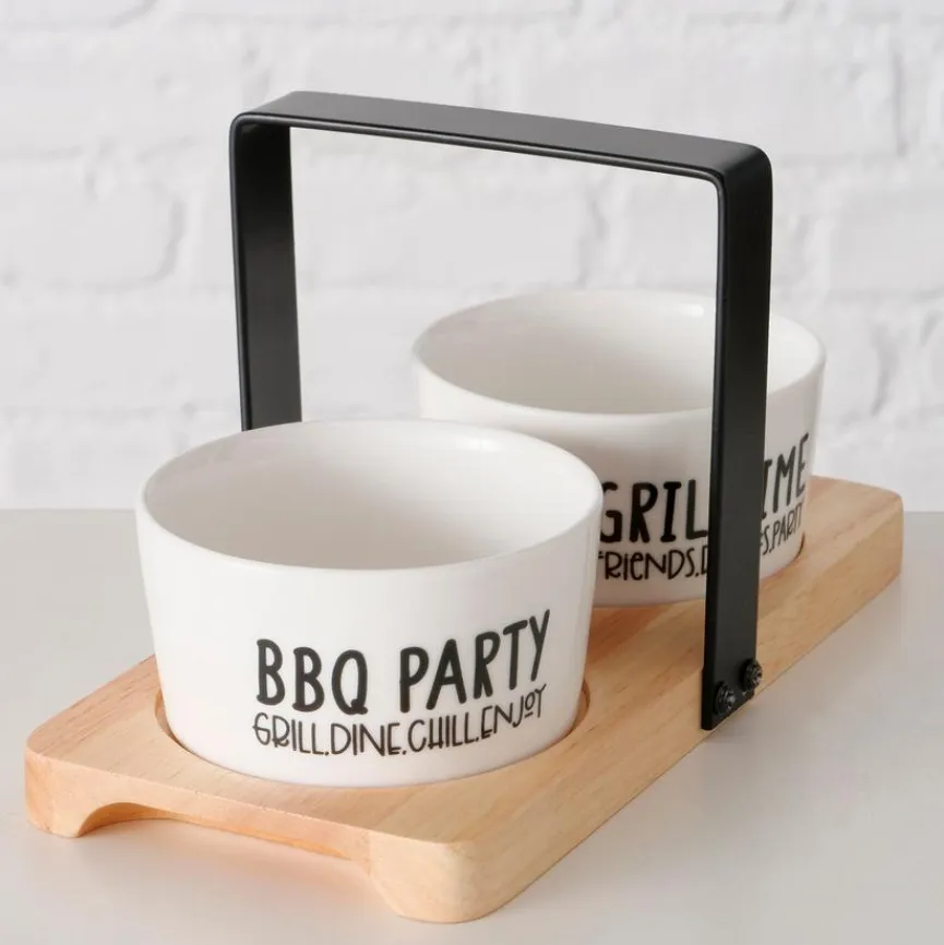 Mit der Schale Grillhouse 3tlg. von BOLTZE setzen Sie auf Ihrer nächsten Grillparty stilvolle Akzente und verwöhnen Ihre Gäste. Das Set eignet sich perfekt zum Servieren von Dips, Soßen und Snacks, während das robuste Holztablett für einen sicheren Transport sorgt. So wird die trendige Schale Grillhouse 3tlg. zu einem echten Hingucker auf jedem gedeckten Tisch.