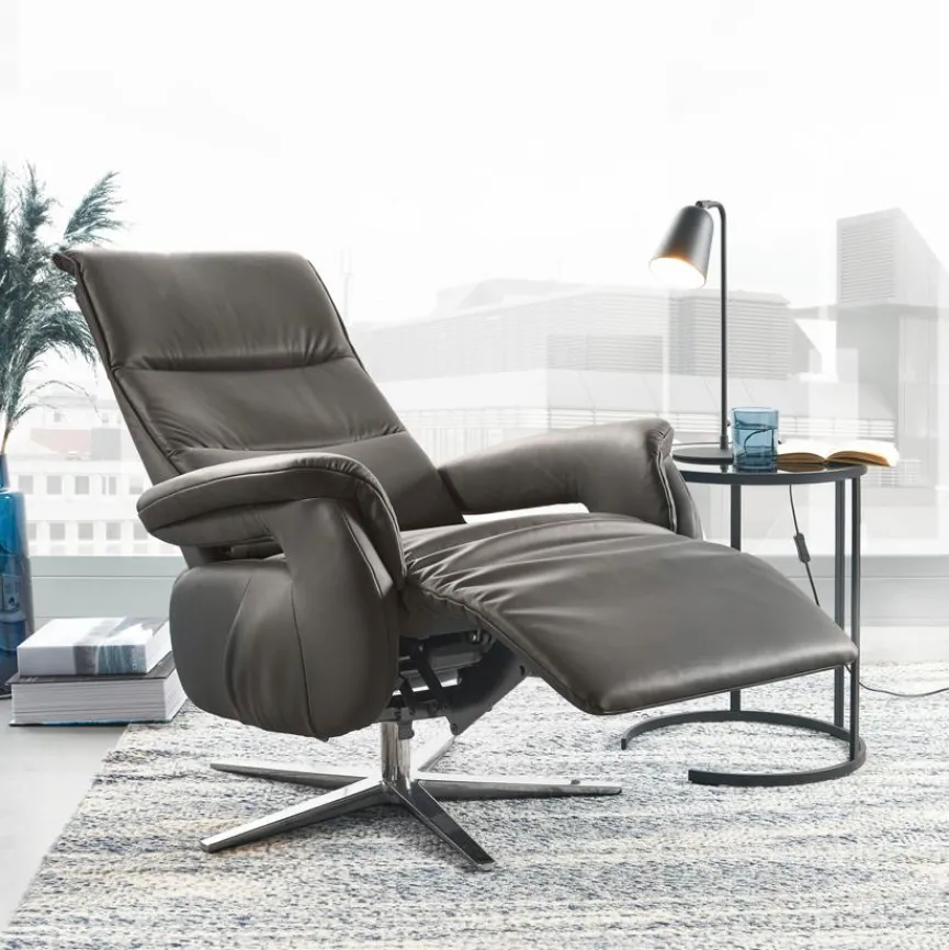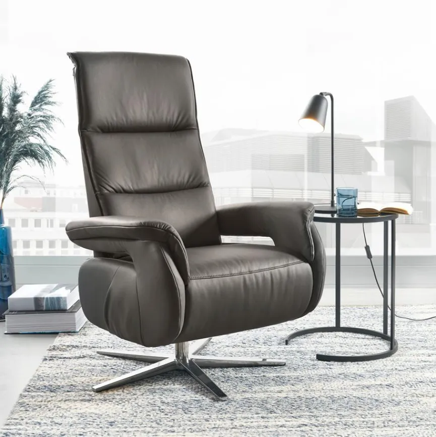 - Bezug aus Leder (Mercury) in black, 5-Sternfuß Aluminium glänzend (907)