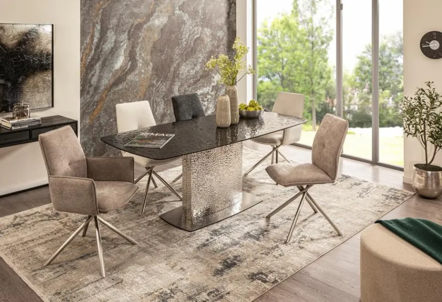 Der Stuhl Santa Rosa bietet Ihnen dank des angenehm weichen Bezuges nicht nur hervorragenden Komfort, er ist auch ein absoluter Blickfänger. Ein dezentes Muster und ein attraktiv gestaltetes, filigran wirkendes Gestell aus Edelstahl bestimmen seinen unwiderstehlichen Look. Auf diese Weise ist der Stuhl Santa Rosa ein Gewinn für Wohneinrichtungen unterschiedlichster Art.