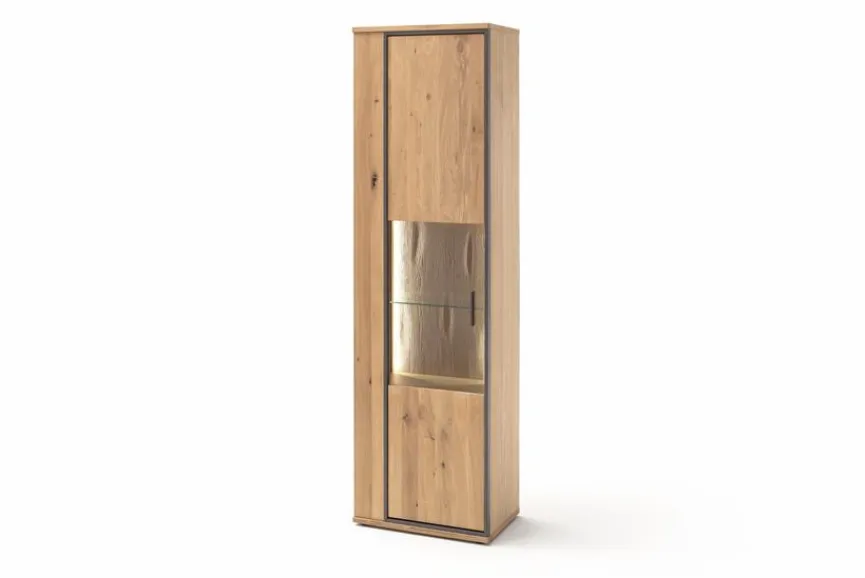 Mit der geschmackvollen Vitrine Campinas bringen Sie Ihre Schätze in den Fokus. Die trendige Glasvitrine überzeugt mit ihrer beruhigenden Holzoptik und benötigt dank ihrer schmalen Form wenig Platz. Auf zwei separaten Glasböden haben Ihre Lieblingsstücke ausreichend Platz, um sich zu präsentieren. Zudem findet sich in der Vitrine Campinas oberhalb und unterhalb der transparenten Auslage genügend Platz für die Dinge, die Sie blickdicht verstauen möchten.