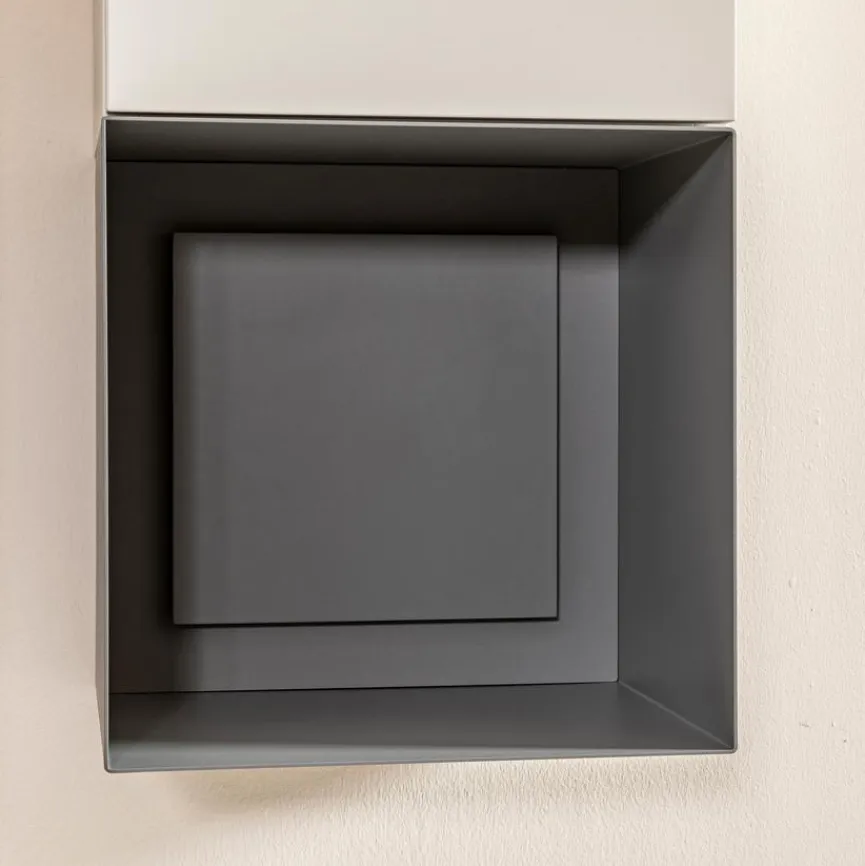 - Front und Korpus aus Holzwerkstoff (Spanplatte/MDF) in Lack matt Bianco Gesso, Absetzung in Lack pastellblau