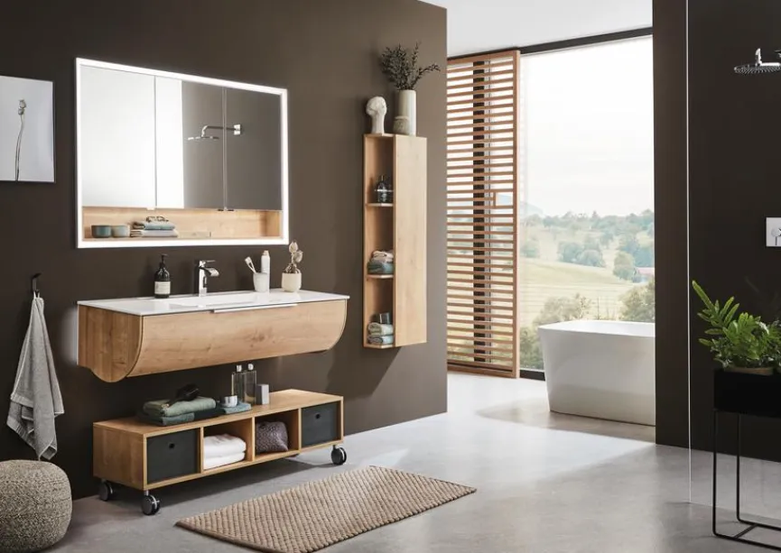 - Kombination bestehend aus Waschtischunterschrank mit 1 Metallauszug mit Einzugsdämpfung und Siphonausschnitt und 1 Stoneplus-Waschtisch in weiß mit 1 Hahnloch und Clou Ab- und Überlaufsystem
