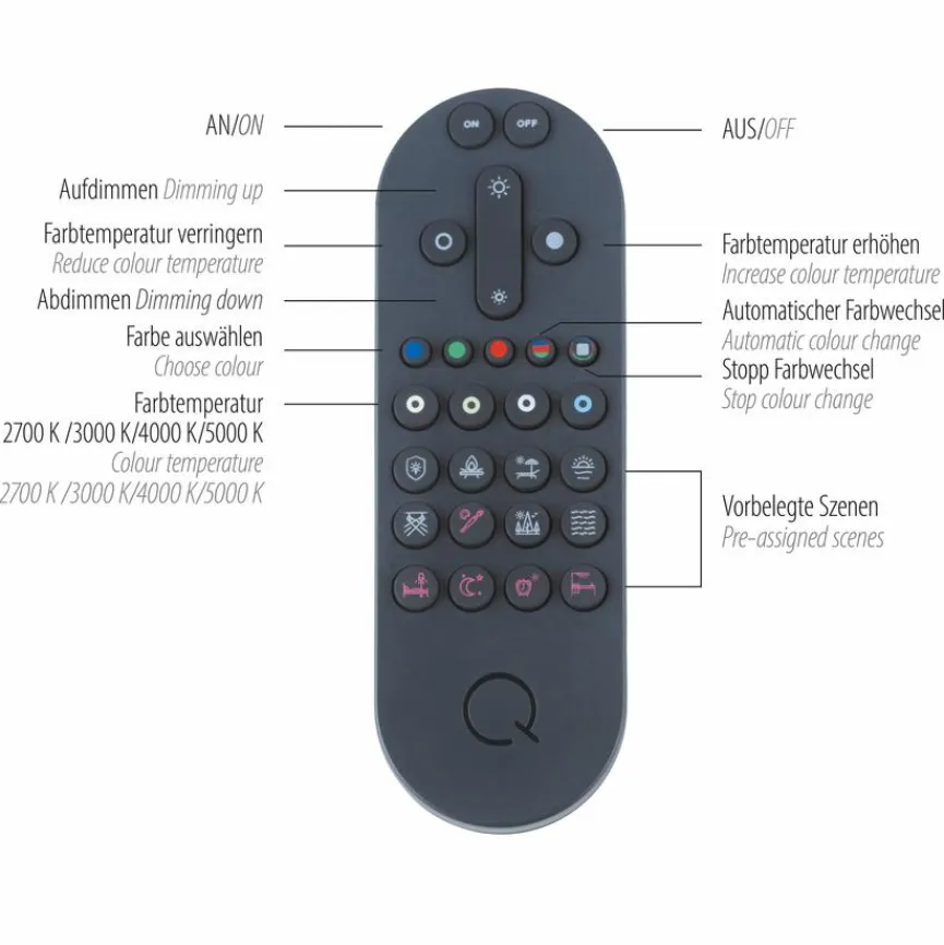 - Mit Fernbedienung zum Dimmen und Einstellen der Farbtemperatur (2.700 bis 5.000 Kelvin) oder per App steuerbar