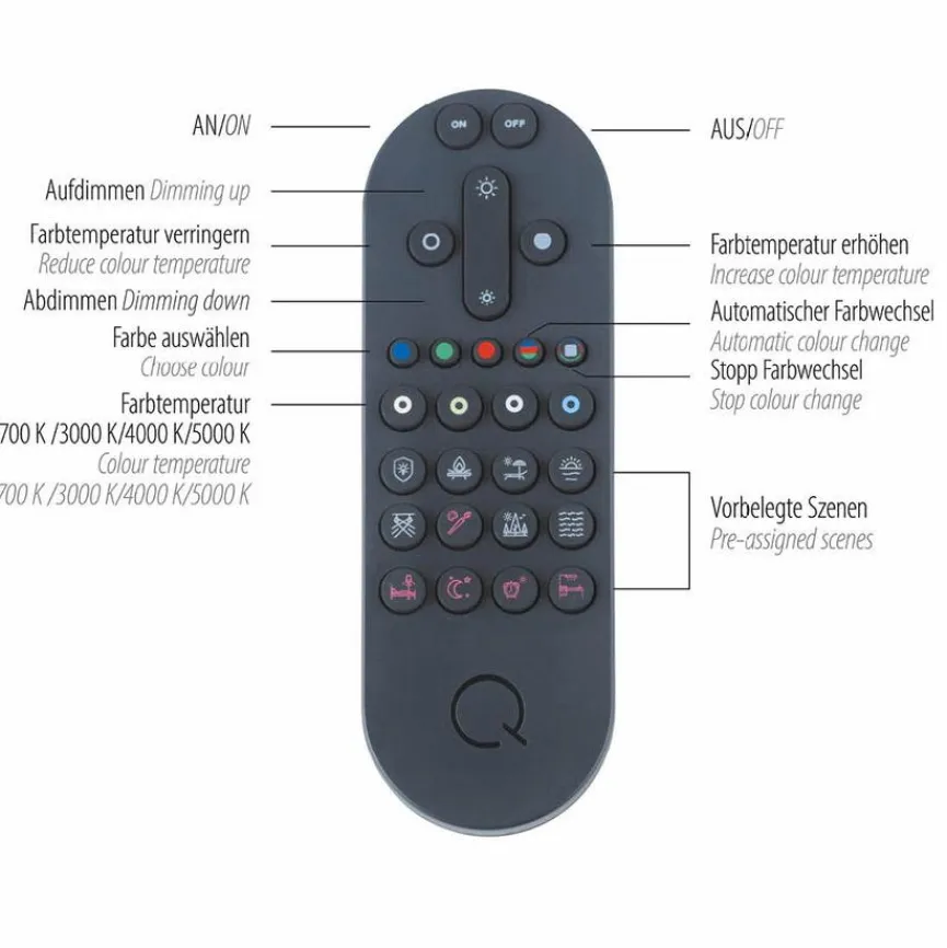 - Mit Fernbedienung zum Dimmen und Einstellen der Farbtemperatur (2.700 bis 5.000 Kelvin) oder per App steuerbar