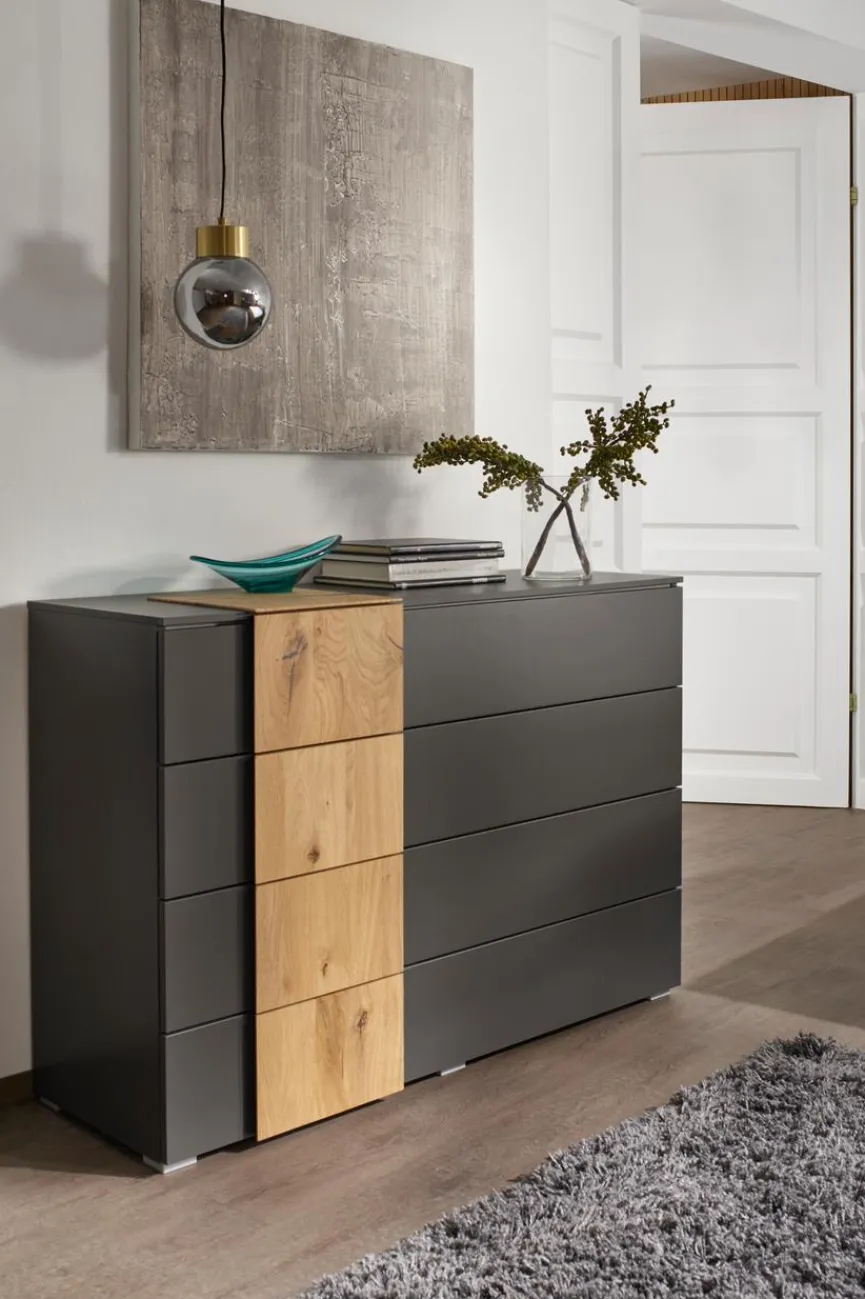 Die hochwertig gearbeitete Kommode Kona von rauch BLACK hilft dabei, auf stilvolle Weise Ordnung zu halten. Zurückhaltend und edel wirkt das Design des Möbelstücks, das auf seiner Oberseite Platz für Schönes und Dekoratives bietet. Von Kleidung über Heimtextilien bis hin zu Haushaltsgegenständen oder Technik – alles kann in der Kommode Kona leicht zugänglich verstaut werden, was blickgeschützt aufbewahrt werden soll.