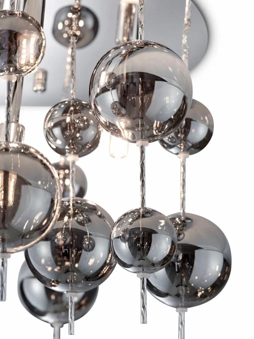Wenn Sie das Licht der aparten Deckenleuchte Rain von Reality Leuchten einschalten, wird es durch die blank polierten Objekte einzigartig reflektiert. Die moderne Deckenlampe stellt das besondere Highlight in Ihrem Wohnzimmer dar. Auch in jedem anderen Raum können Sie die edle Deckenleuchte Rain von Reality Leuchten integrieren.
