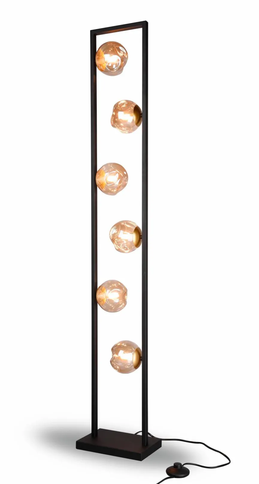 Die einzigartige Formgebung der Stehlampe Lana von Reality Leuchten mit dem rechteckigem Gestell und den kugeligen Glasschirmen ist ein wahrer Blickfang. Durch ihrem progressiven Look fügt sich die Stehleuchte gut in modern eingerichtete Räume ein. Aufgrund der mehrflammigen Ausstattung der Reality Leuchten Stehlampe Lana können Sie zudem eine ausgezeichnete Ausleuchtung des Zimmers erwarten.
