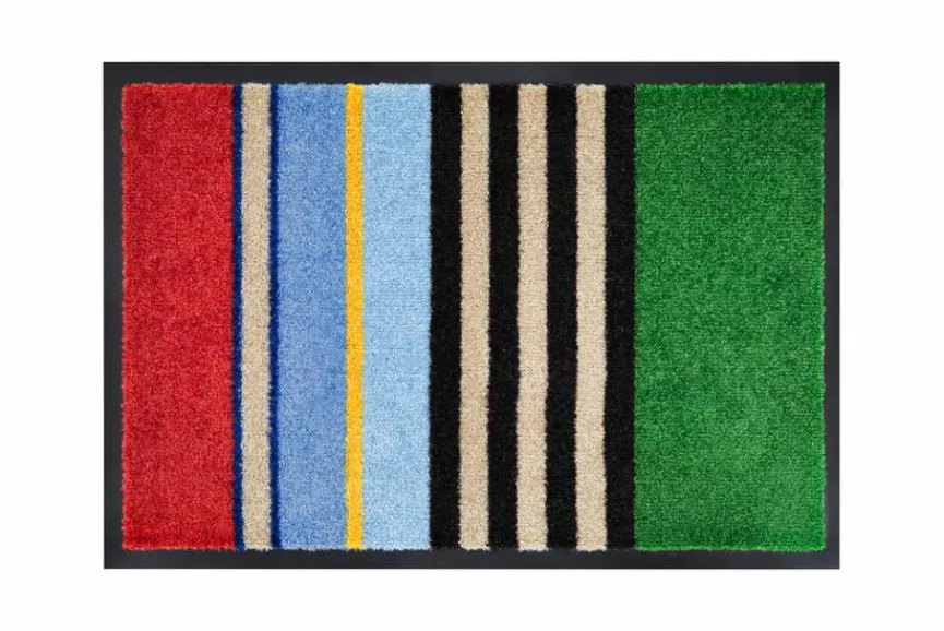 Empfangen Sie mit der Fußmatte Rio 75×50 cm von Remember Ihre Gäste mit einem herrlich farbenfrohen Look! Ein prächtiges, kontrastreiches Streifendesign macht diese Schmutzfangmatte zu einem gern gesehenen Accessoire. Die Unterseite aus Gummi trägt dafür Sorge, dass die Fußmatte Rio 75×50 cm nicht so einfach verrutschen kann.