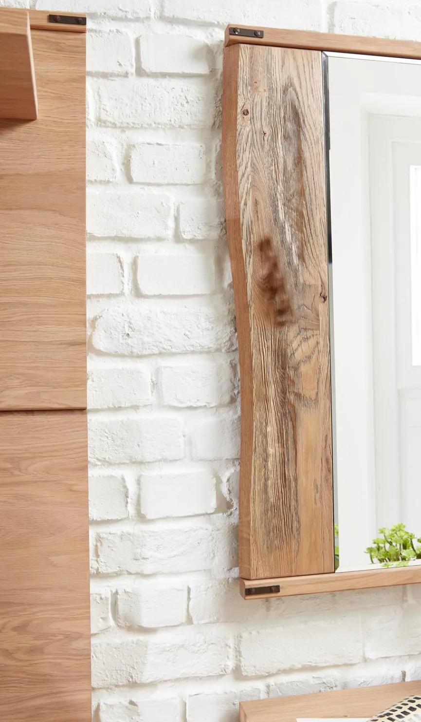 Der Spiegel Boste der Marke Wohnconcept ist besonders gut geeignet für diejenigen, die einen natürlichen Akzent in ihrem Zuhause setzen möchten. Ermöglicht wird dies durch die Verarbeitung von einer massiven Holzplanke und zwei Planken in Wildeiche Dekor. Mit dem Wohnconcept Spiegel Boste macht das Frisieren und Make-Up-Auflegen einfach Freude.