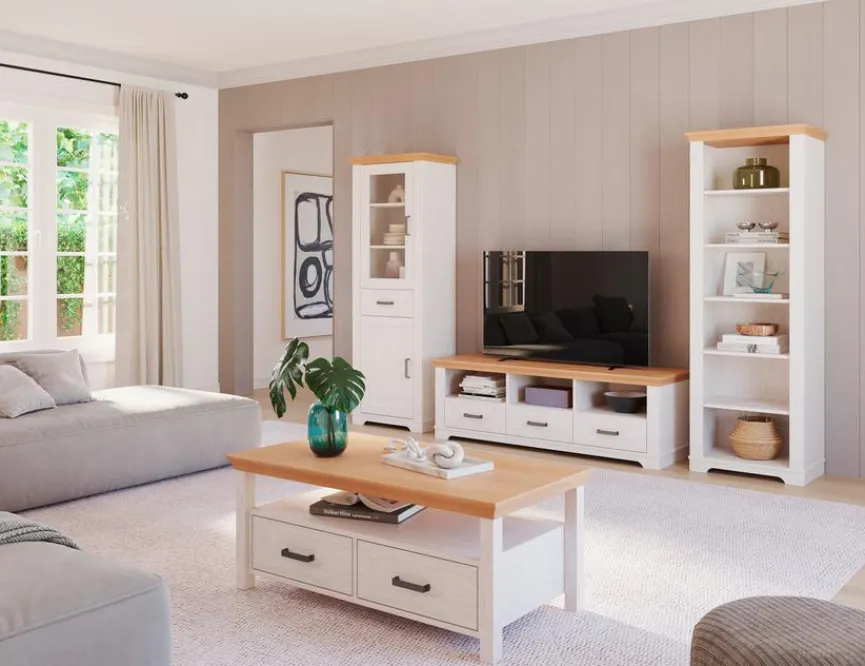 Die Kiefer bietet ein helles und leichtes Holz. Möbel aus diesem Naturmaterial sind meist etwas günstiger und dennoch sehr langlebig. Ein Anstrich mit weißem Lack schont die Oberflächen und zaubert eine freundliche Optik.