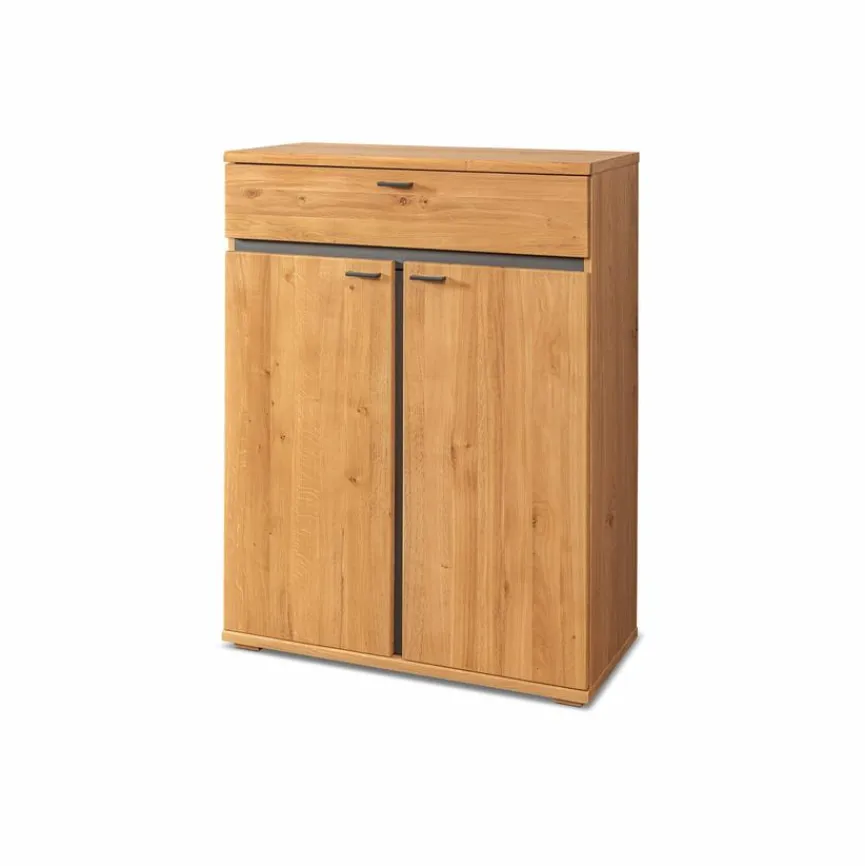 Der kompakte Schuhschrank Wien punktet mit einer natürlichen Optik und bietet hinter zwei Türen viel Platz, um Schuhe ordentlich zu verstauen. Dafür stehen drei Einlegeböden zur Verfügung, die jeweils mit bis zu acht Kilogramm belastet werden können. Darüber hinaus ist der Schuhschrank Wien mit einer Schublade ausgestattet, in der sich Accessoires unterbringen lassen.