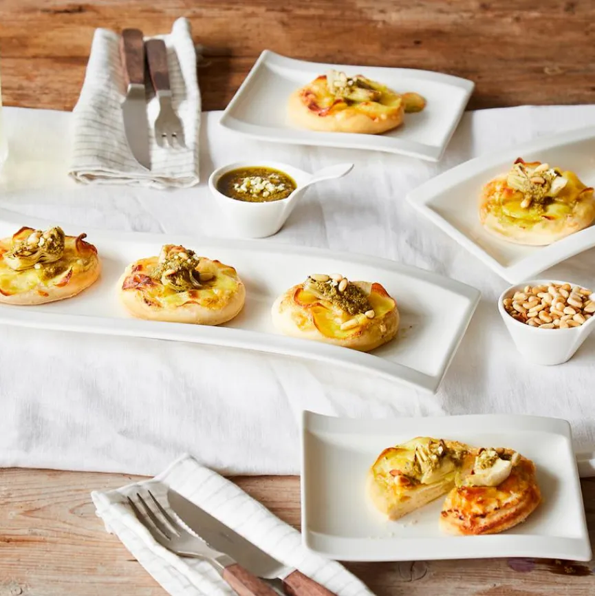Der Servierteller New Wave 15×42 cm von Villeroy & Boch sieht sehr edel aus, sodass er die Tafel schnell aufwertet. Ordnen Sie die Snacks nach Belieben an und stellen Sie den Teller zum Beispiel in die Tischmitte. Schon ermöglicht der Servierteller New Wave 15×42 cm, dass Ihre Gäste beherzt zugreifen können.