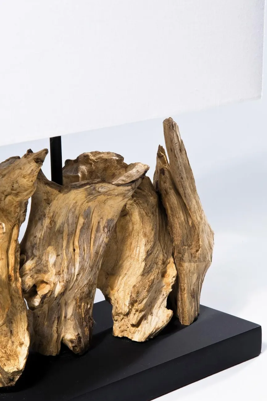 Tischleuchte Nature Vertical aus dem Hause KARE fasziniert, denn zwischen dem geradlinig gestalteten Schirm und dem flachen, quaderförmigen Sockel dieser Tischlampe befinden sich vom Meer geformte Elemente aus Treibholz. Sie bieten einen famosen Kontrast zu den strengen Geometrien und verleihen der Tischleuchte Nature Vertical von KARE ihre Einzigartigkeit.