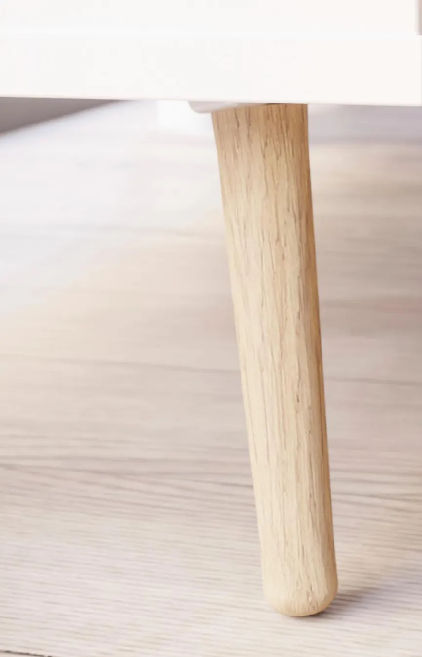 - Aus Holzwerkstoff (Spanplatte) mit hochwertiger Dekorfolie in Weiß, Absetzung aus Holzwerkstoff (Spanplatte) mit hochwertiger Dekorfolie in Eiche Mauvella, Rückwand aus Holzwerkstoff (HDF) in Weiß