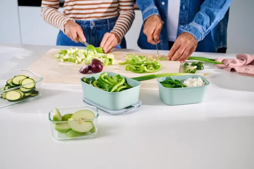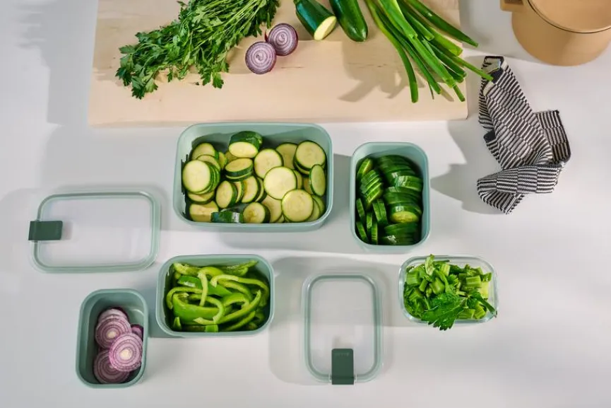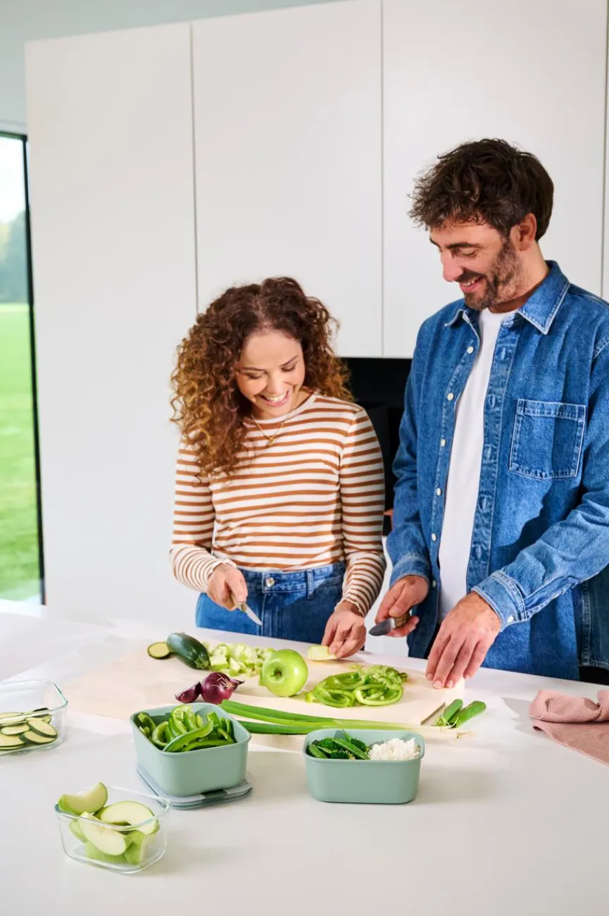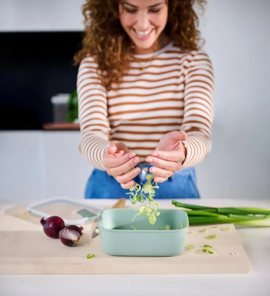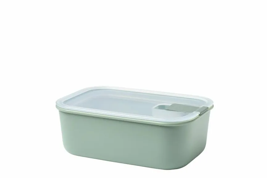 Die Vorratsdose Easyclip 1000 ml von Mepal ist ein ungemein praktischer Helfer in der Küche, wenn es um die Aufbewahrung von Lebensmitteln geht. Die Deckel der Gefäße schließen mit nur einem Klick absolut luft- und aromadicht, ihre Lebensmittel bleiben dadurch deutlich länger frisch. Sie können sowohl trockene als auch frische Esswaren in der der auslaufsicheren Vorratsdose Easyclip 1000 ml aufbewahren.