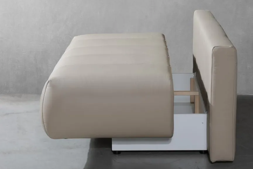 - Inkl. Schlaffunktion durch umklappbare Rückenlehne und Bettkasten