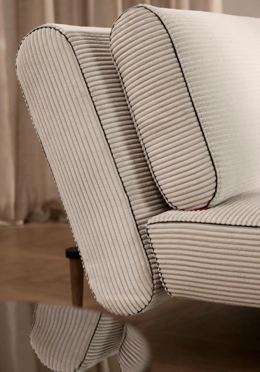 - Bezug aus Stoff (corduroy) in ivory (594), Füße aus Massivholz dunkel gebeizt