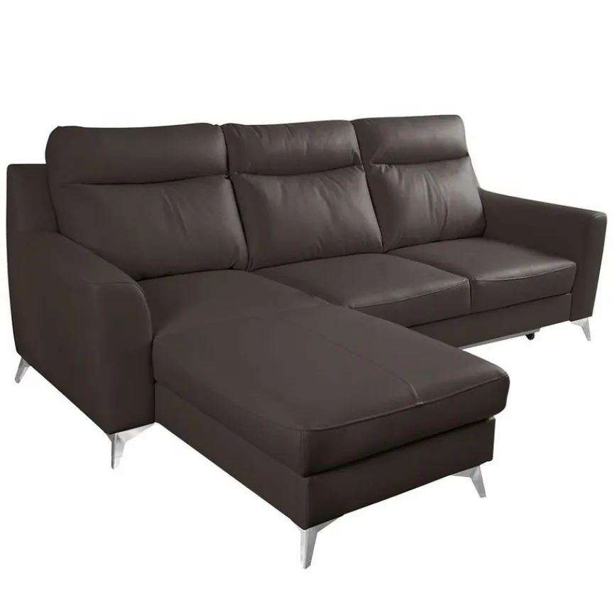 - Sitzbezug aus Leder (Madras) in dunkelbraun (510), Korpusbezug aus Lederoptik in dunkelbraun (510), Füße Metall verchromt