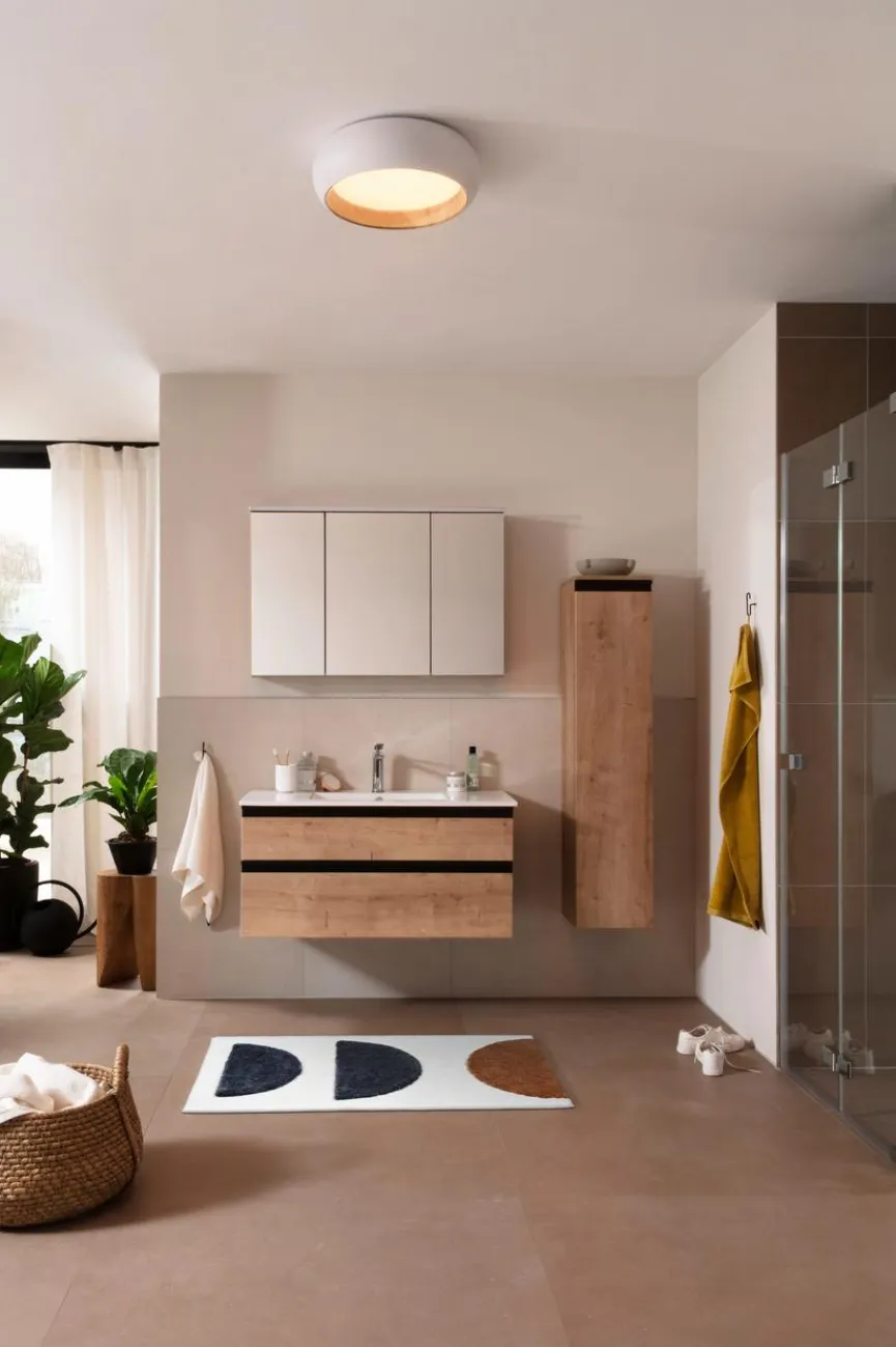 Der Badteppich Barbados 60×90 cm aus der SCHÖNER WOHNEN-Kollektion setzt einen sonnigen Wohlfühlakzent. Drei halbkreisartige Elemente bestimmen das kontrastreiche Design dieser Badematte, die auch auf einen Boden mit einer Fußbodenheizung ausgelegt werden kann. Vorteilhaft ist, dass der Badteppich Barbados 60×90 cm mit einer rutschhemmenden Beschichtung aufwartet.