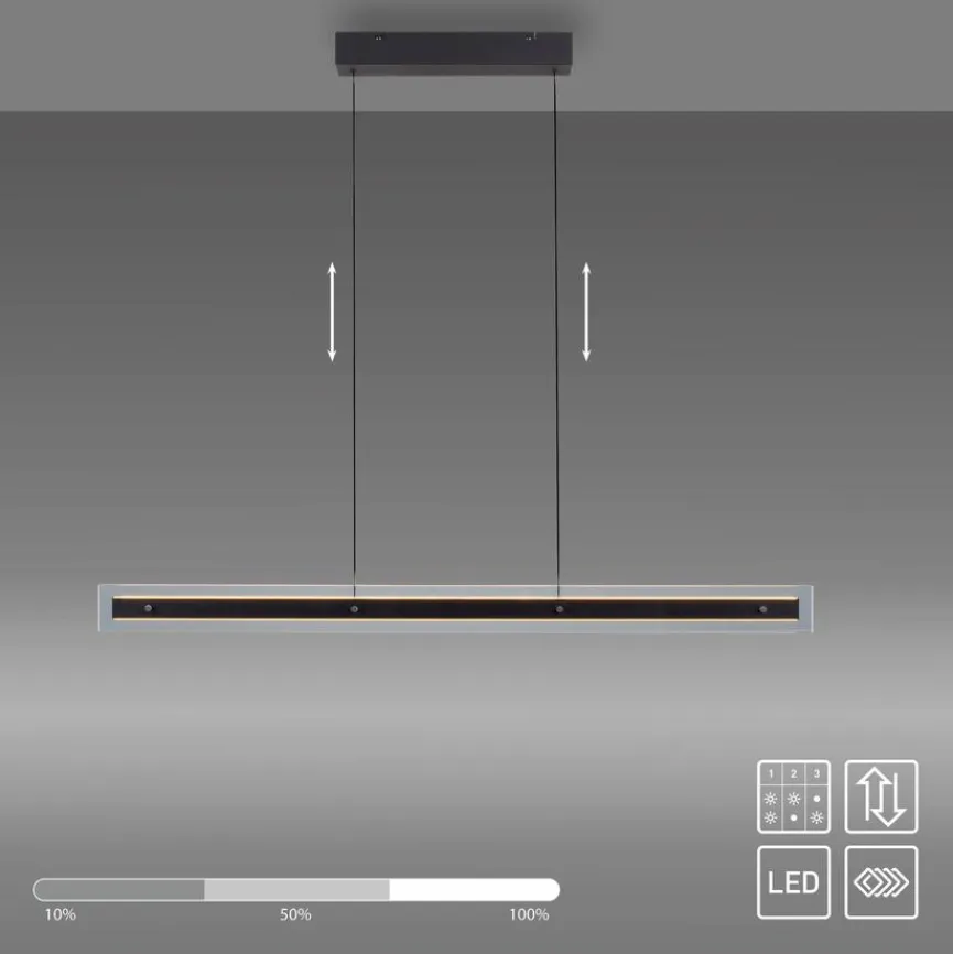 Die LED-Pendelleuchte Lena aus der SCHÖNER WOHNEN-Kollektion ist eine großartige Interieuridee fürs Wohn- oder Esszimmer. Klar gezeichnete Linien verleihen der LED-Pendellampe Eleganz und modernen Style. Eine Rauchglasblende bringt zudem eine atmosphärische Lichtstreuung mit sich. Dank der Höheneinstellung können Sie die LED-Pendelleuchte Lena entsprechend den Gegebenheiten vor Ort in einem gewissen Maß anpassen.