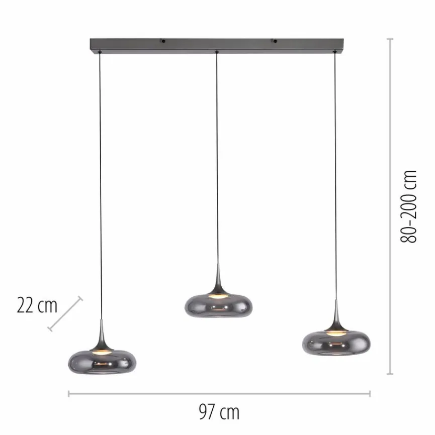 Hinter den drei Ufo-förmigen Glasschirmen der LED-Pendelleuchte Posh aus der SCHÖNER WOHNEN-Kollektion befinden sich fest verbaute LEDs, die Helligkeit in einen Raum oder über einen Tisch bringen. Mit ihrem wohnlichen Charakter ist die LED-Pendelleuchte Posh bestens für das Wohnzimmer geeignet. Da sie sich längs ausrichten lässt, ist die LED-Pendellampe auch für schmale Flure eine gute Wahl.
