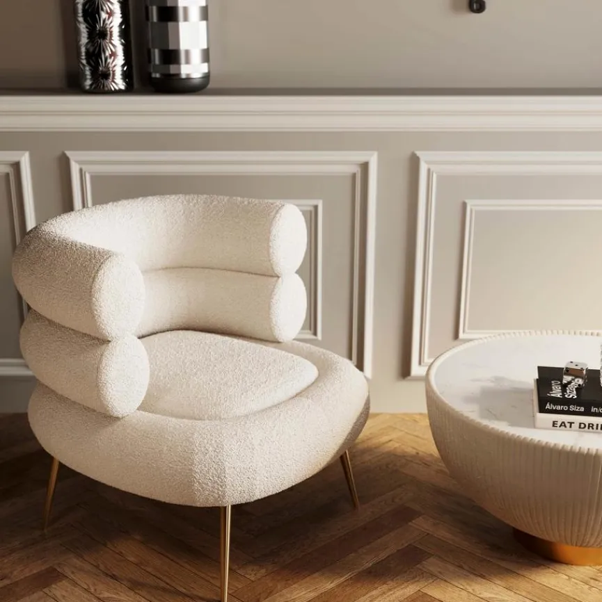 Bei Bouclé (auch Buklee genannt) handelt es sich um einen Stoff, dessen Optik und Haptik sich durch unregelmäßig verteilte Knoten, Noppen und Schlingen besonders hervortut. Er gilt als wenig empfindlich und kaum knitteranfällig.