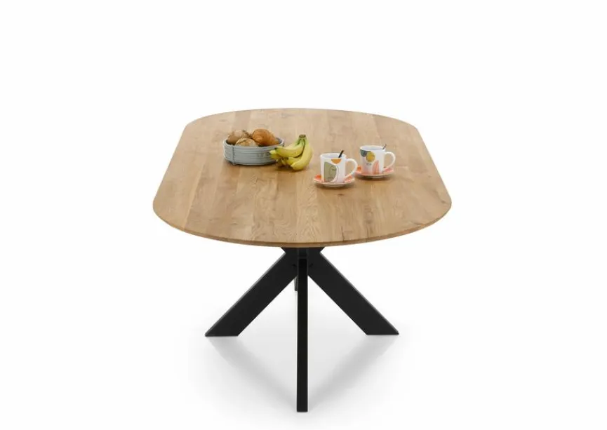 Mit dem massiven Esstisch Lakewood 240×120 cm von set one by Musterring holen Sie sich einen modernen Eyecatcher in Ihr Zuhause. Die massive Eiche-Tischplatte des Esszimmertischs mit Schweizer Kante zieht alle Blicke auf sich und bildet einen kontrastreichen Industrie-Look mit dem sternförmigen, lackierten Metallgestell. Ergänzen Sie Ihr Esszimmer mit dem robusten Esstisch Lakewood 240×120 cm.