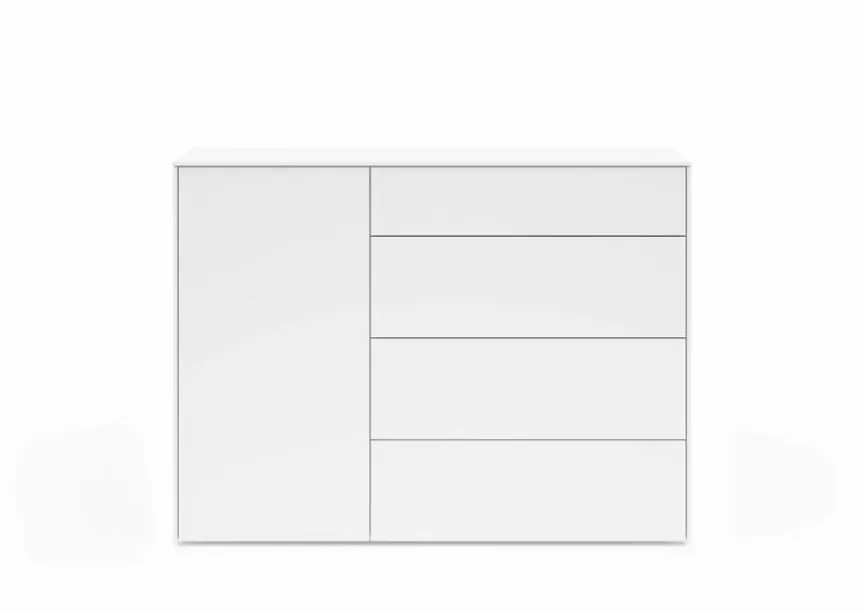 Durch ihr geradliniges und kompaktes Design wirkt die Kommode Riverside aus dem Hause set one by Musterring äußerst zeitgemäß. Die kratzfeste Melaminharzfolie des Möbelstücks sorgt außerdem für eine unempfindliche Oberfläche. Natürlich trägt die Kommode Riverside dank des großen Stauraums ebenfalls zur Ordnung bei.