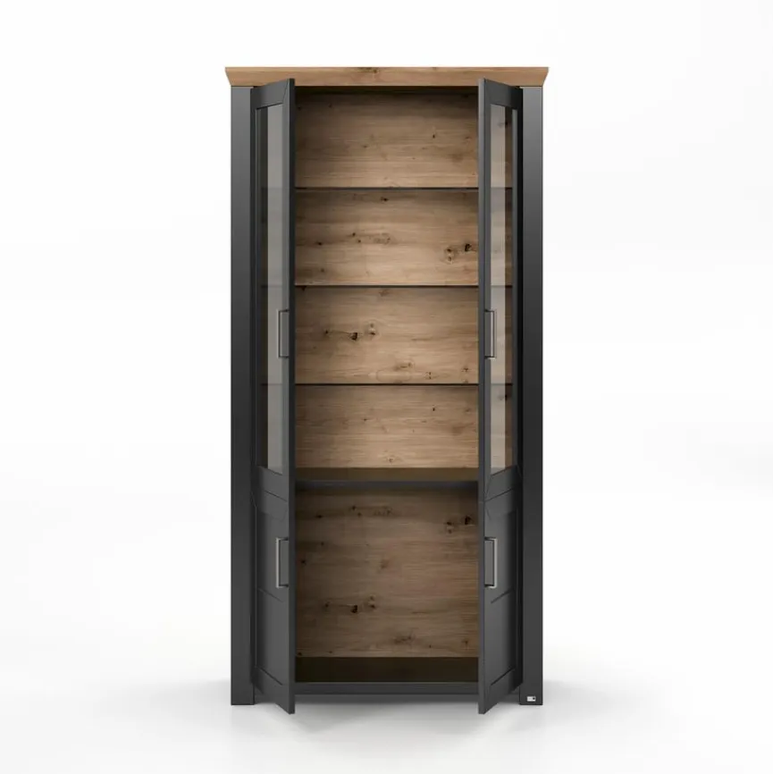 Die set one by Musterring Vitrine York ist im modernen Country-Stil gestaltet. Für den klassischen Touch, den diese mit zwei Türen versehene Glasvitrine mit sich bringt, sorgt ein markantes Kranzprofil. Kombinieren Sie die Vitrine York am besten mit den anderen Möbeltypen aus diesem herrlich gemütlich wirkenden Programm!