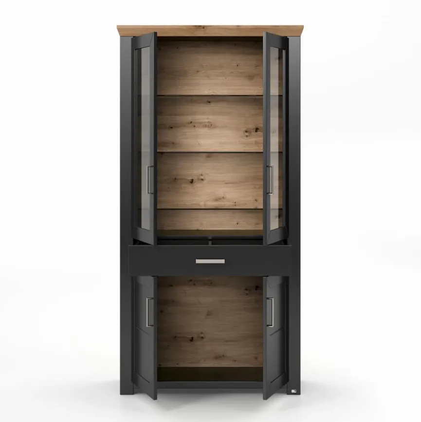In der Vitrine York von set one by Musterring wird Ihnen viel Platz geboten, um Dinge wie dekorative Figuren, Vasen oder Bilderrahmen auszustellen. Dafür stehen Ihnen die drei Einlegeböden der Glasvitrine zur Verfügung. Wahlweise erhalten Sie die Vitrine York von set one by Musterring mit einer stimmungsvollen Beleuchtung.