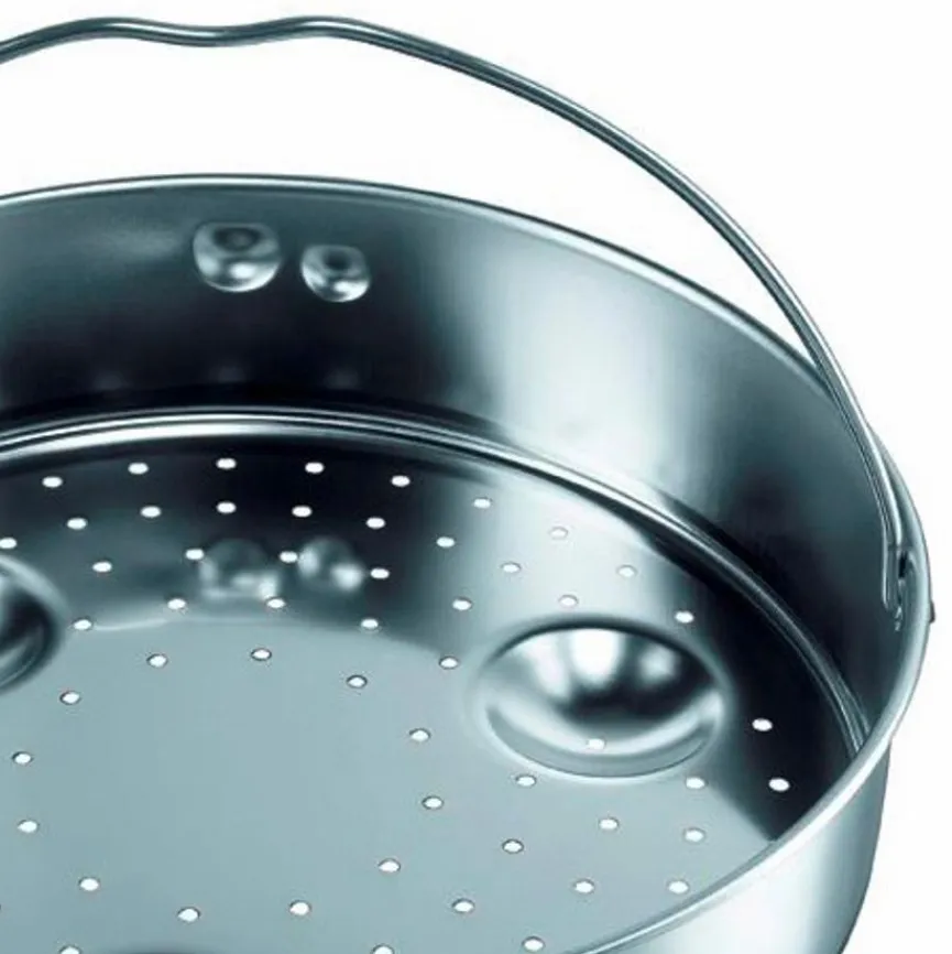 Der Einsatz Ø 22 cm von Silit ist eine sinnvolle Ergänzung zum passenden Sicomatic. Mit diesem Tool lassen sich zum Beispiel Fisch oder Gemüse im Wasserdampf auf eine besonders schonende Art und Weise garen. Reinigen können Sie den Einsatz Ø 22 cm aus dem Hause Silit in der Spülmaschine.