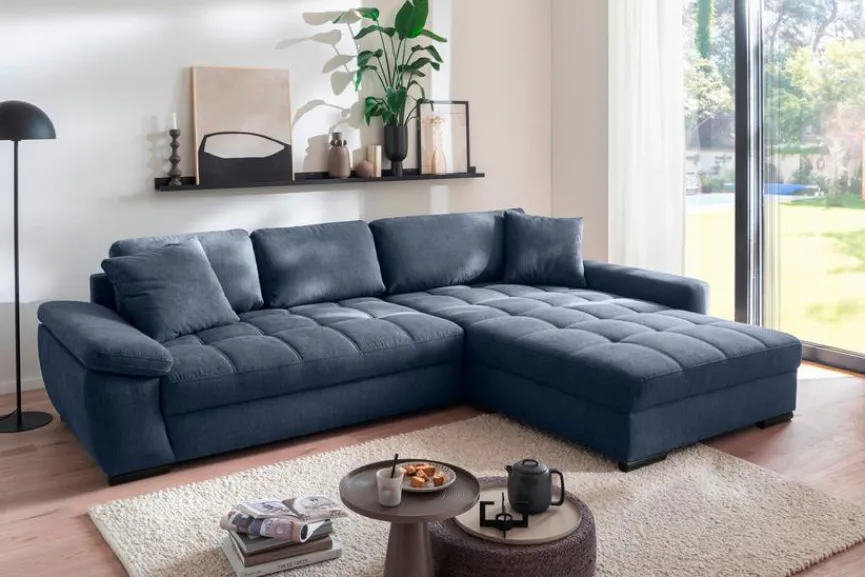 Farbe: MarineMaterial: StoffGröße: Breite: 323,00 cm, Höhe: 93,00 cm, Tiefe: 223,00 cm