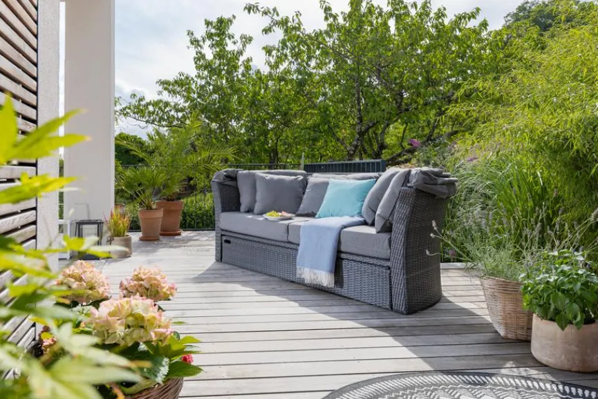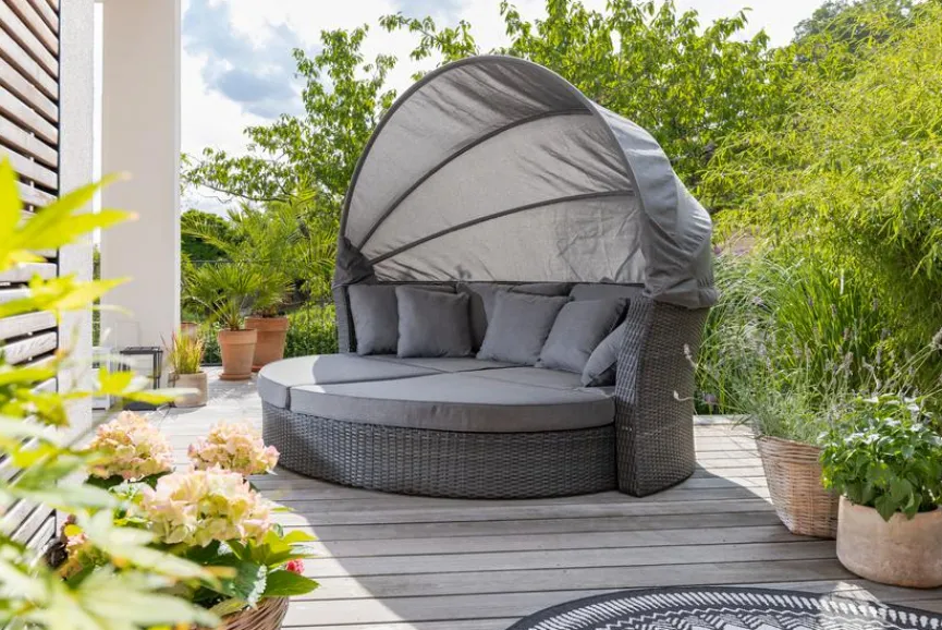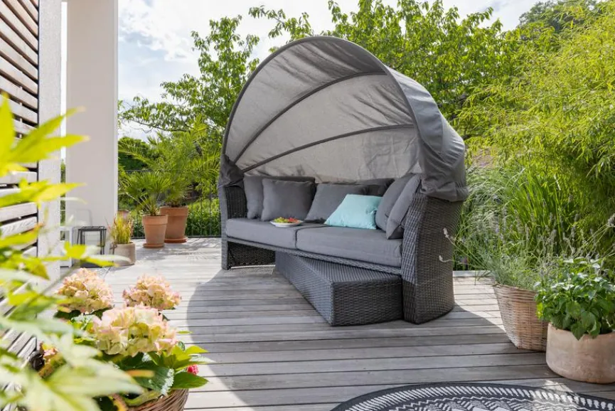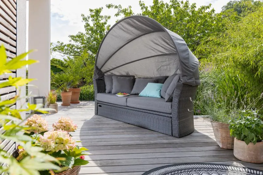 - Bei eingefahrenem Fußteil, kann die Lounge auch als Sofa genutzt werden