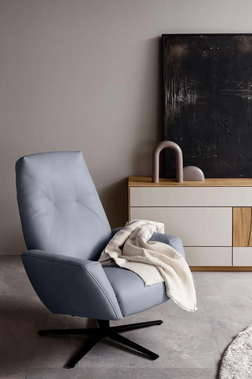 - Bezug aus Leder (Mariposa) in pool, Sternfuß anthrazit pulverbeschichtet (K)