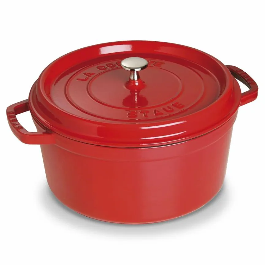 Der runde Bräter mit Deckel La Cocotte 28 cm von Staub punktet vor allem mit einer speziellen Tropfenstruktur im Deckel. Diese führt zu einem besonders saftigen Kochergebnis. Der Bräter mit Deckel La Cocotte 28 cm von Staub kann auch im Backofen verwendet werden.